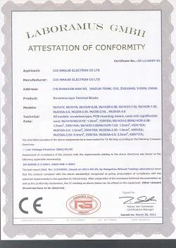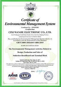 CIXI WANJIE ELECTRONIC CO., LTDje osnovana 1992., mi smo profesionalni proizvođač koji je specijaliziran za istraživanje i razvoj, dizajn, obradu, proizvodnju, prodaju i servis terminalnih blokova. Proizvodi uključuju PCB vijke i opruge, priključne, MCS, prolazne i barijerne terminalne blokove, koji se naširoko koriste u kontroli električne energije, automatizaciji, dizalima, instrumentima, komunikacijama, napajanju, sigurnosti, rasvjeti, željezničkom prijevozu i drugim srodnim područjima . Proizvodi se prodaju diljem svijeta i dobili su jednoglasne pohvale kupaca.